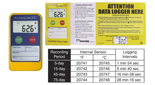 新 推出的FlashLink VU是記錄溫敏產(chǎn)品儲(chǔ)存和運(yùn)輸環(huán)境條件的理想儀器。這款運(yùn)輸途中數(shù)據(jù)記錄儀有一個(gè)大而容 易閱讀的液晶顯示屏,能夠提供即時(shí)的溫度信息和統(tǒng)計(jì)數(shù)據(jù),包括行程中的溫度上下極限、溫度超標(biāo)的累積時(shí)間、最高溫度、最低溫度和平均溫度。 FlashLink VU無(wú)需停止或下載記錄儀就能獲取溫度數(shù)據(jù)。即使是經(jīng)營(yíng)者不啟動(dòng)數(shù)據(jù)記錄儀,其專利的影子記錄?功能也能保證歷史溫度數(shù)據(jù)的獲取。一次性使用的 FlashLINK VU包裝在一個(gè)附有簡(jiǎn)便易行的使用說明,,可見度極高的黃色紙盒內(nèi),幫助收貨方很快在貨堆里找到數(shù)據(jù)記錄儀。 DeltaTrak’s FlashLink VU Logger 是記錄儲(chǔ)存和運(yùn)輸溫度敏感產(chǎn)品溫度的理想設(shè)備。