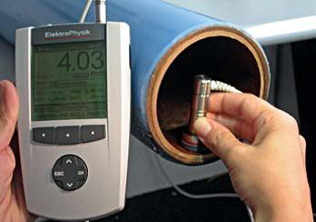 重現(xiàn)性 讀數(shù)的可靠性主要取決于讀數(shù)的重現(xiàn)性。電磁干擾是最普遍的導(dǎo)致誤差的根源,所以保護測量系統(tǒng)和探頭電纜免受這些干擾非常重要。 跟傳統(tǒng)技術(shù)不同,SIDSP®在探頭內(nèi)部產(chǎn)生和控制激發(fā)信號;貍鞯男盘栔苯舆M行數(shù)字轉(zhuǎn)換和處理從而提供測量厚度值。厚度值通過探頭電纜數(shù)字化傳輸?shù)斤@示裝置,也就是說:在這種情況下模擬測量系統(tǒng)的信號傳輸過程中沒有更多干擾。即使您的測量工件需要特別長的電纜線也沒問題,加長的電纜線同樣具有極強的抗干擾能力。 EPK 的SIDSP®探頭具有極高的重現(xiàn)性。將探頭放在同一測量點測量幾次,每次您都可以得到基本一樣的結(jié)果,再次證明了SIDSP®探頭的優(yōu)秀性能。