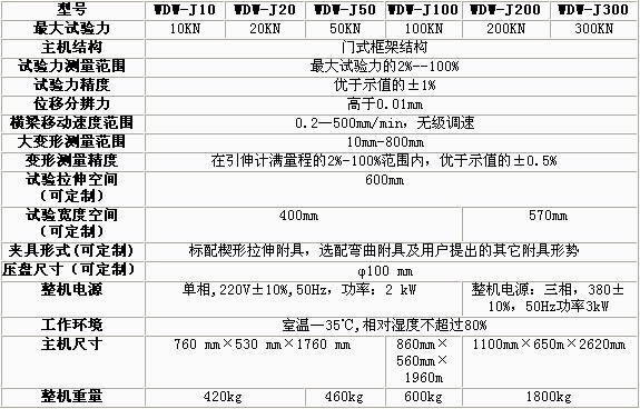 產(chǎn)品概述: WDW-J系列電子式萬能試驗機主機與輔具的設(shè)計融匯了我公司的先進技術(shù),外形美觀,電子萬能試驗機功能,操作方便,2噸電子萬能試驗機,性能穩(wěn)定可靠。系統(tǒng)通過全數(shù)字控制器,電子式萬能材料試驗機,經(jīng)調(diào)速系統(tǒng)控 制伺服電機轉(zhuǎn)動,經(jīng)減速系統(tǒng)減速后通過精密絲杠副帶橫梁上升、下降,完成試樣的拉伸力學性能試驗,無污染、噪音低,萬能電子材料試驗機,效率高,具有較寬的調(diào)速范圍。該機廣泛 應(yīng)用于建筑建材、航空航天、機械制造、電線電纜、橡膠塑料、紡織、家電等行業(yè)的材料檢驗分析,電子萬能試驗機廠家,是科研院校、大專院校、工礦企業(yè)、技術(shù)監(jiān)督、商檢仲裁等部門 的理想測試設(shè)備。 功能特點: 1主機 1.1主機采用高鋼度門式框架結(jié)構(gòu),強度高、變形。 1.2 采用進口高精度滾珠絲杠,傳動高效平穩(wěn); 1.3 傳動部分采用圓弧齒同步帶傳動,傳動過程中雙向無間隙; 1.4交流伺服電機保證傳動平穩(wěn),電子萬能拉力試驗機,力矩穩(wěn)定,浙江電子萬能試驗機,具有過流、過壓、過載等保護裝置; 1.5 夾具經(jīng)特殊設(shè)計,夾持牢固,電子式萬能試驗機原理,操作方便,無鉗口滑移現(xiàn)象; 1.6 特殊工藝保證試驗機同軸度,濟南電子萬能試驗機,很好的消除了不規(guī)則試樣對傳感器的影響。 2控制系統(tǒng) 觸摸健操作方式,液晶顯示器實時顯示,電子萬能試驗機系列,克服了老式數(shù)碼管顯示容易發(fā)生故障的難題,并且美觀大方、方便快捷。 技術(shù)參數(shù):