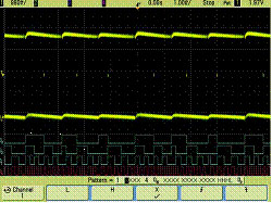 今天市場上的典型便攜式示波器只有有限的采集存儲器深度不能在保存和放大該特定信號后顯示如圖4所示程度的波形細節(jié)。例如僅有10k采集存儲器的示波器在放大后只能顯示20個寬間距點。