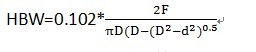 布氏硬度值記為HBS(當(dāng)壓頭為鋼球時),或者HBW(當(dāng)壓頭為硬質(zhì)合金球時)兩者計算公式相同。以下以壓頭為硬質(zhì)合金球的硬度值為例: