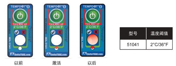 于產(chǎn)品。如果一個產(chǎn)品暴露于閾值以下的溫度,白色的大窗口變紅色或部分紅色,TempDot™ Minus標(biāo)簽