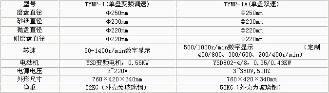 TYMP-1無級變速金相試樣磨拋機(jī) 無極調(diào)速,全自動(dòng)金相拋光研磨機(jī),轉(zhuǎn)動(dòng)平穩(wěn),,噪音低。 造型美觀,金相試樣自動(dòng)研磨機(jī),材料考究,,該機(jī)的集污盤和罩采用玻璃鋼整體制成。 本機(jī)一個(gè)頭三種功能為一身,金相切片研磨機(jī),使用時(shí)只需更換磨盤或拋盤和研盤就能完成各種試樣的粗磨、細(xì)磨、干磨、濕磨和研磨及拋光等各道工序。 磨、拋、研盤轉(zhuǎn)速獨(dú)立操作。適應(yīng)各種材料的試樣制備。 功能特點(diǎn): TYMP-1A單盤雙速金相試樣磨拋機(jī) 單盤雙速,金相樣品自動(dòng)研磨機(jī),轉(zhuǎn)動(dòng)平穩(wěn),金相拋光研磨機(jī),噪音低。 造型美觀,材料考究,該機(jī)的集污盤和罩采用玻璃鋼整體制成。 本機(jī)一個(gè)頭三種功能為一身,金相研磨機(jī),使用時(shí)只需更換磨盤或拋盤和研盤就能完成各種試樣的粗磨、細(xì)磨、干磨、濕磨和研磨及拋光等各道工序。 磨、拋、研盤轉(zhuǎn)速獨(dú)立操作。適應(yīng)各種材料的試樣制備。 該機(jī)可定制基本轉(zhuǎn)速為500/1000r/min,金相研磨機(jī)價(jià)格,并備有400/800r/min、300/600r/min或200/400r/min,,供用戶在訂貨時(shí)選擇。 技術(shù)參數(shù):