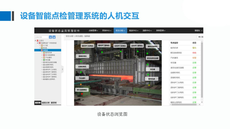 智能設(shè)備點檢管理系統(tǒng)適用于發(fā)電企業(yè)、石油化工企業(yè)、煤礦洗煤廠、冶金企業(yè)等,針對24小時連續(xù)運行的工業(yè)企業(yè),設(shè)備狀態(tài)標志牌,設(shè)備運行安全需求高,設(shè)備管理復(fù)雜,實現(xiàn)設(shè)備的運行維護標準的管理。